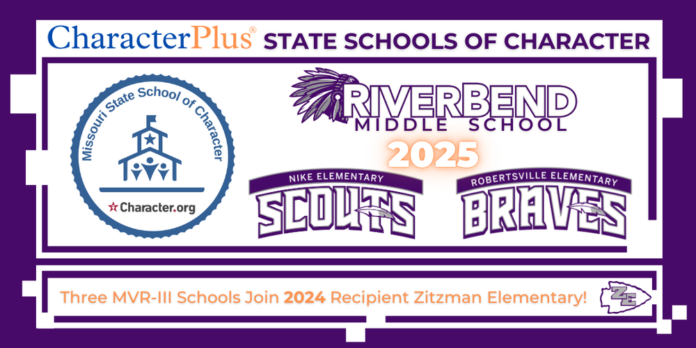 Only 98 schools nationwide and 16 in Missouri have been named State Schools of Character by Character.org and CharacterPlus, and three of those are MVR-III schools. This distinguished honor recognizes their commitment to fostering positive character in their school communities.